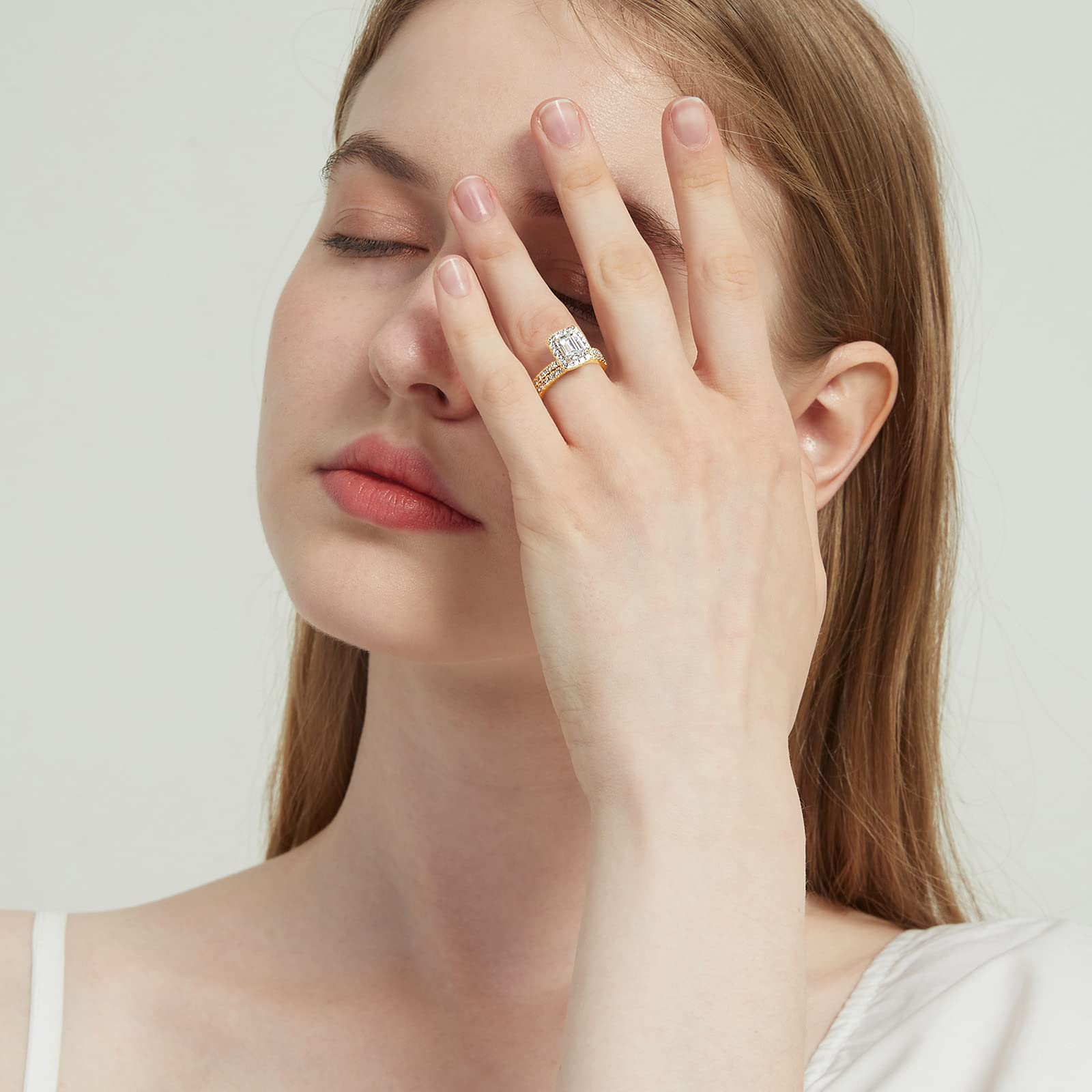 s925 silvers set, emerald cut rings, 2ct rings for wedding, 2ct rings for women, gold plated rings, stuuning cz ring, eternity ring
