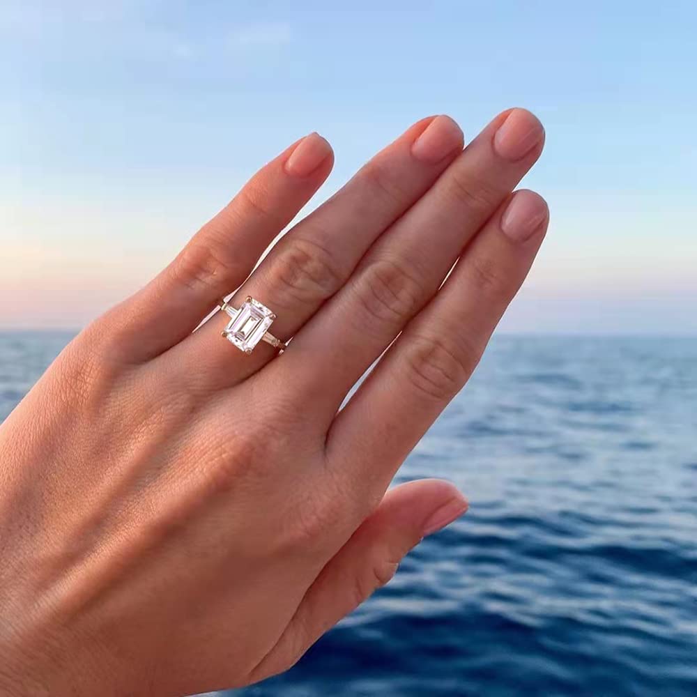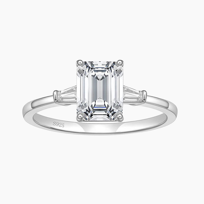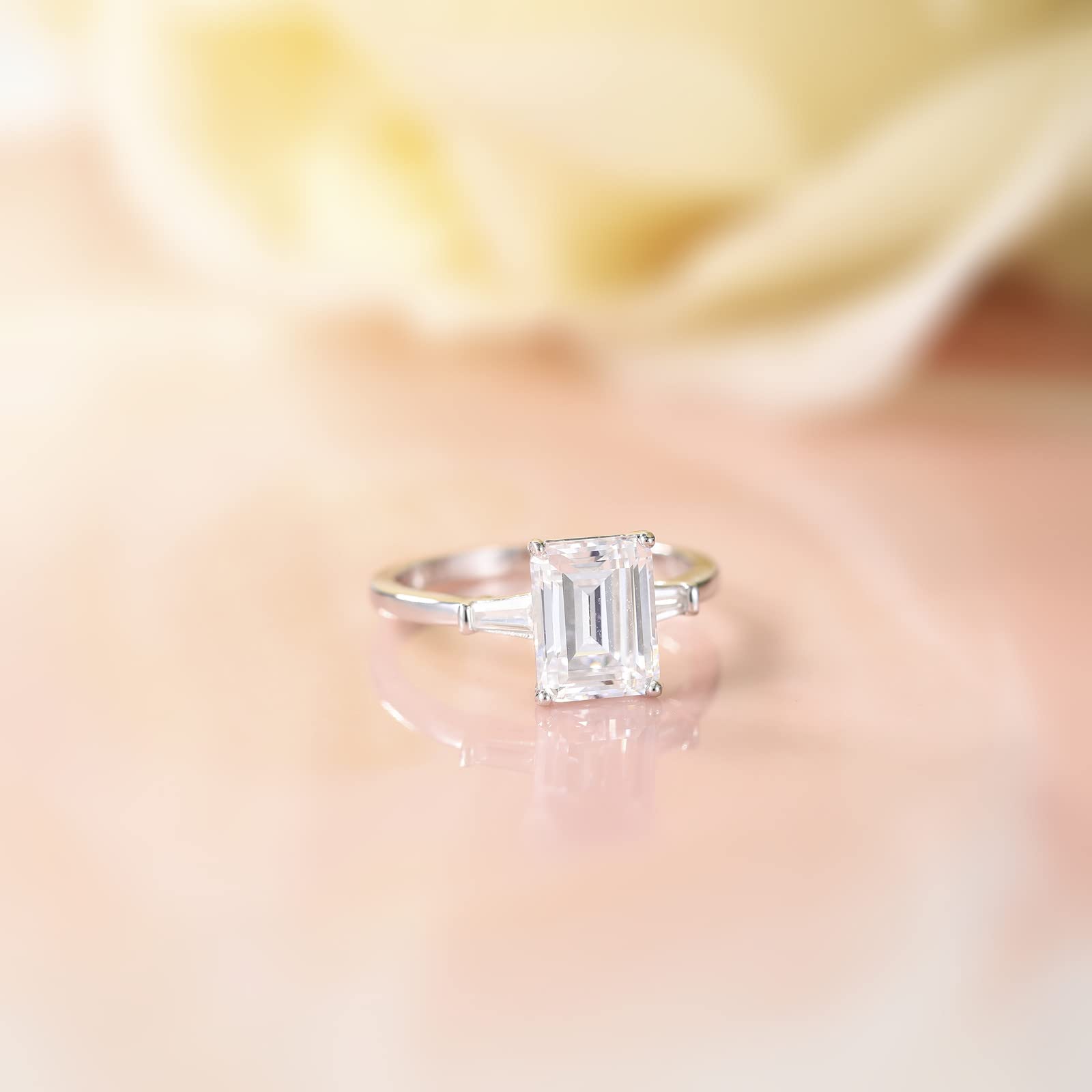 In questo classico anello a tre pietre, due pietre trapezoidali CZ delineano perfettamente la gemma centrale di smeraldo. È un'ottima alternativa alle preziose fedi nuziali, il design elegante e semplice non passerà mai di moda. In occasione di matrimoni, fidanzamenti, San Valentino, feste, compleanni o nella vita di tutti i giorni, questo squisito anello ti farà sempre apparire bellissima e sarai sempre alla moda.