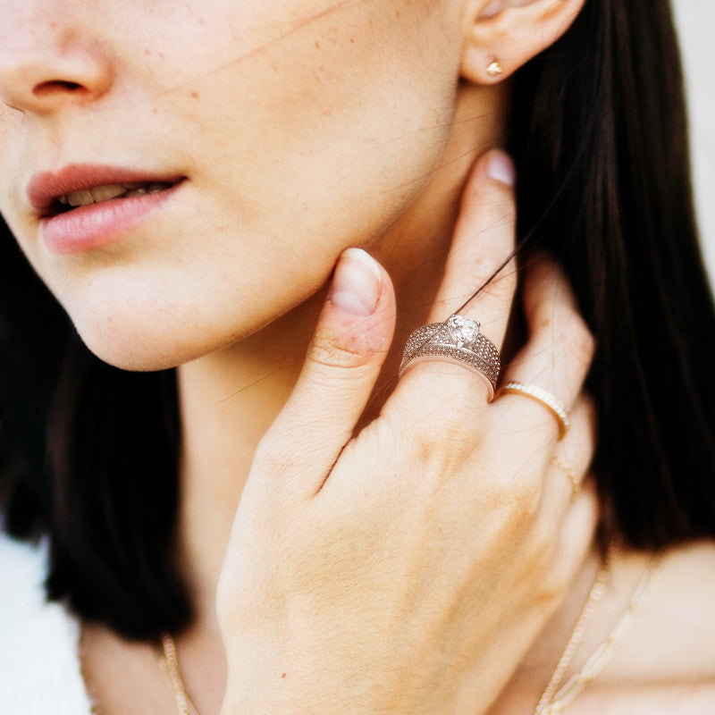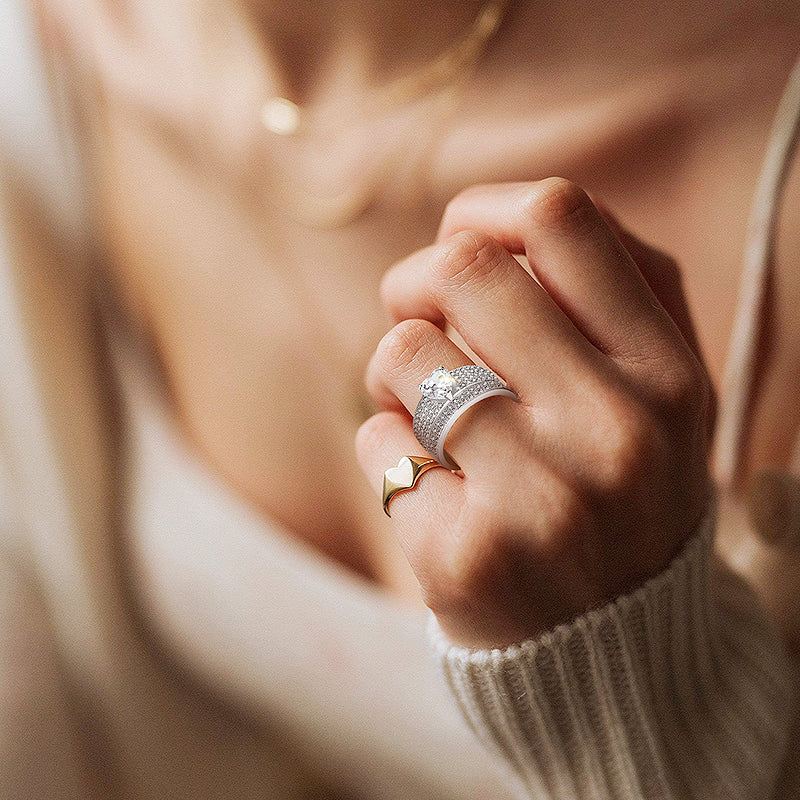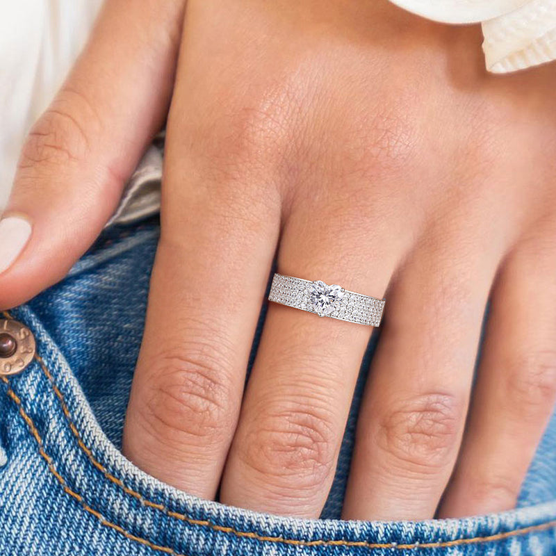 Questo set da matrimonio dal design accattivante presenta uno splendido anello di fidanzamento con una pietra centrale brillante e brillante da 1,2 ct, tagliata a cuore e un'elegante fede nuziale per l'eternità, questo intramontabile set in argento sterling 925 la manterrà felice per l'eternità!