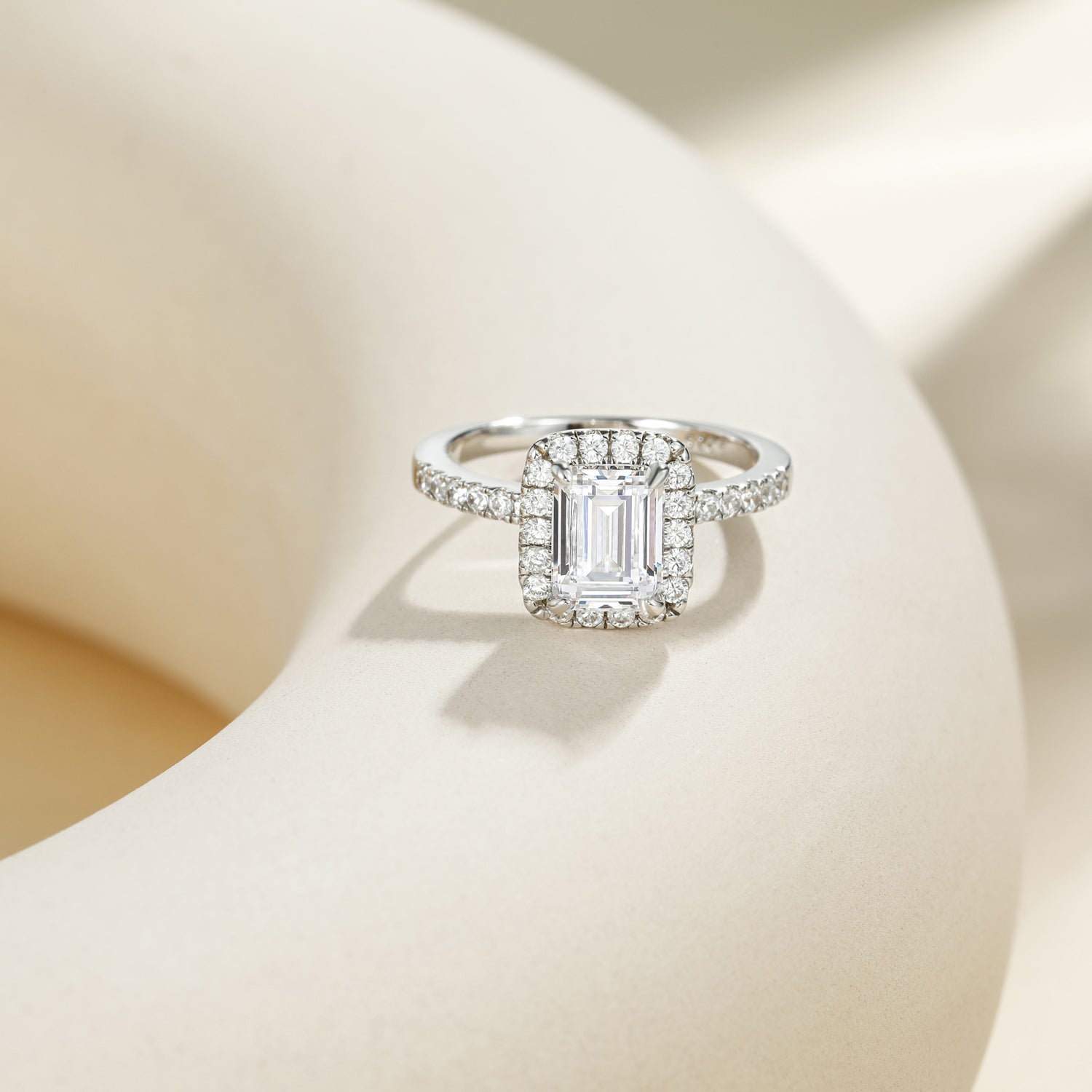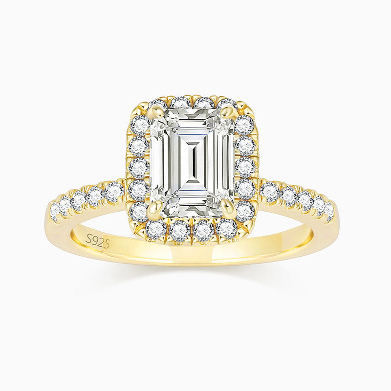 Irradia un'eleganza senza tempo con i nostri anelli di fidanzamento classici con zirconi cubici di smeraldo: una splendida vetrina di pietre preziose lucenti e pavé di pietre di zirconi cubici. Esplora fedi nuziali da donna convenienti che fondono perfettamente raffinatezza e stile, con ogni anello meticolosamente pavimentato con zirconi per una maggiore brillantezza.