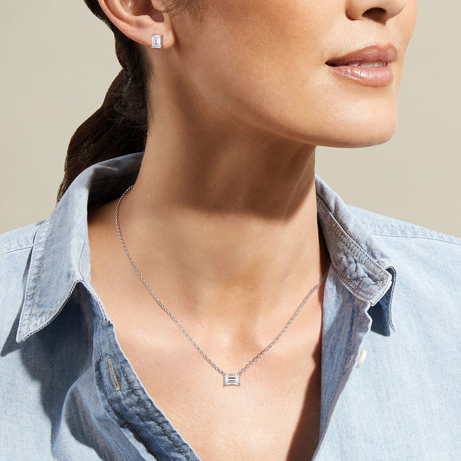 Crafted in polished 925 Sterling Silver, this vintage-inspired necklace and dangle earrings set features a stunning emerald-cut stone in a sleek, minimalist design, making it perfect as elegant wedding jewelry for the bride. The timeless emerald-cut stone offers understated luxury with its refined simplicity and red-carpet appeal, adding sophisticated bridal glamour to your special day while ensuring hypoallergenic comfort.