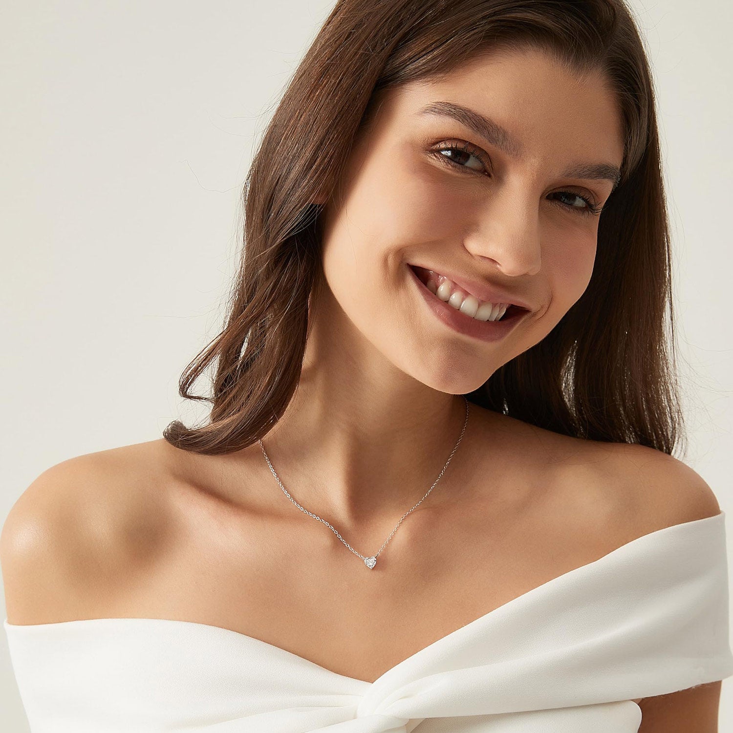 This adorable heart necklace, crafted from 925 sterling silver, features a stunning 6mm heart-cut cubic zirconia stone that adds a charming sparkle. A perfect gift for loved ones or a sweet addition to any outfit, it offers a timeless, cute design that radiates love and elegance.