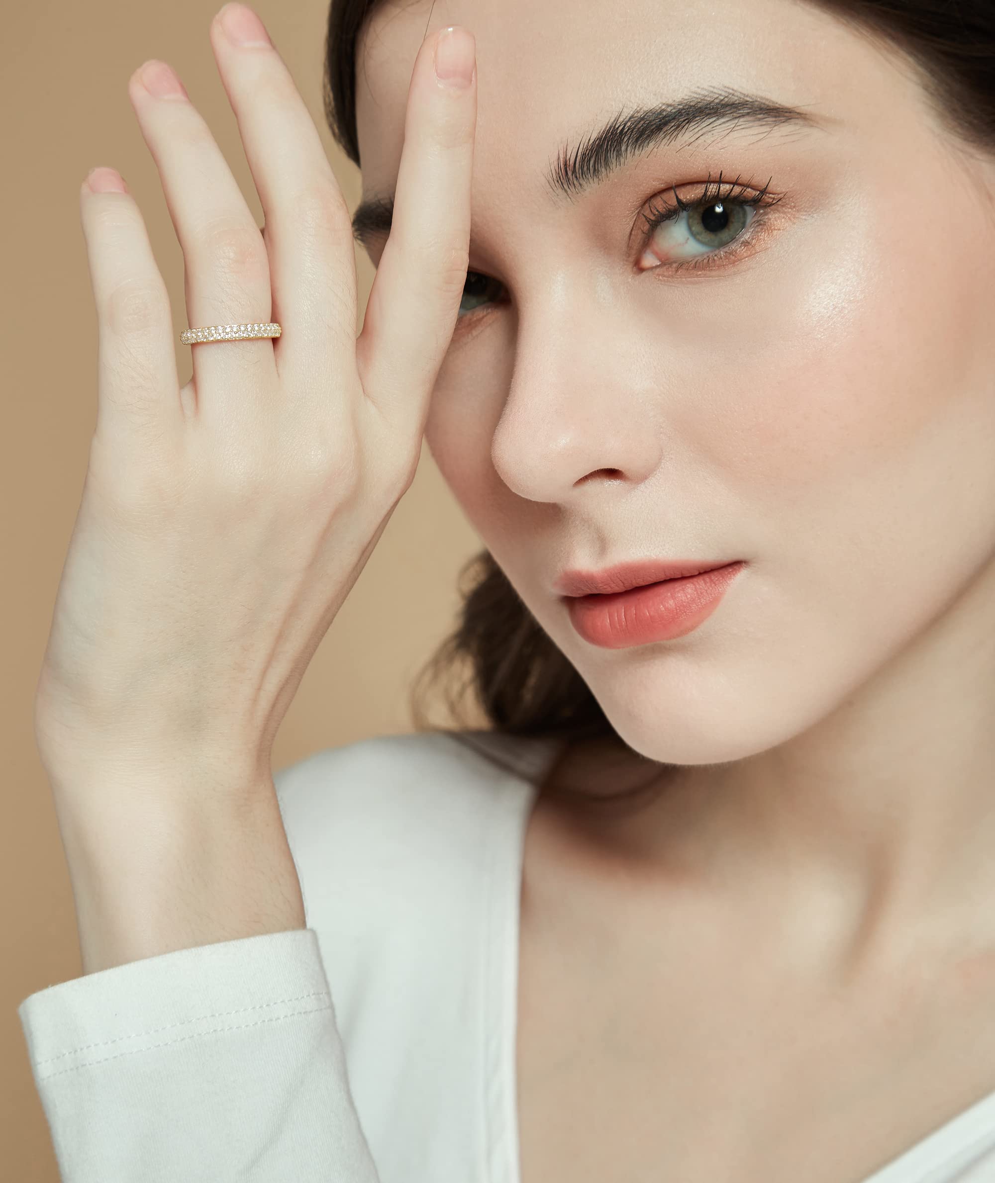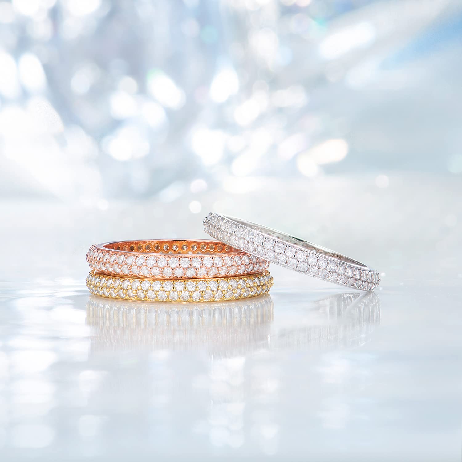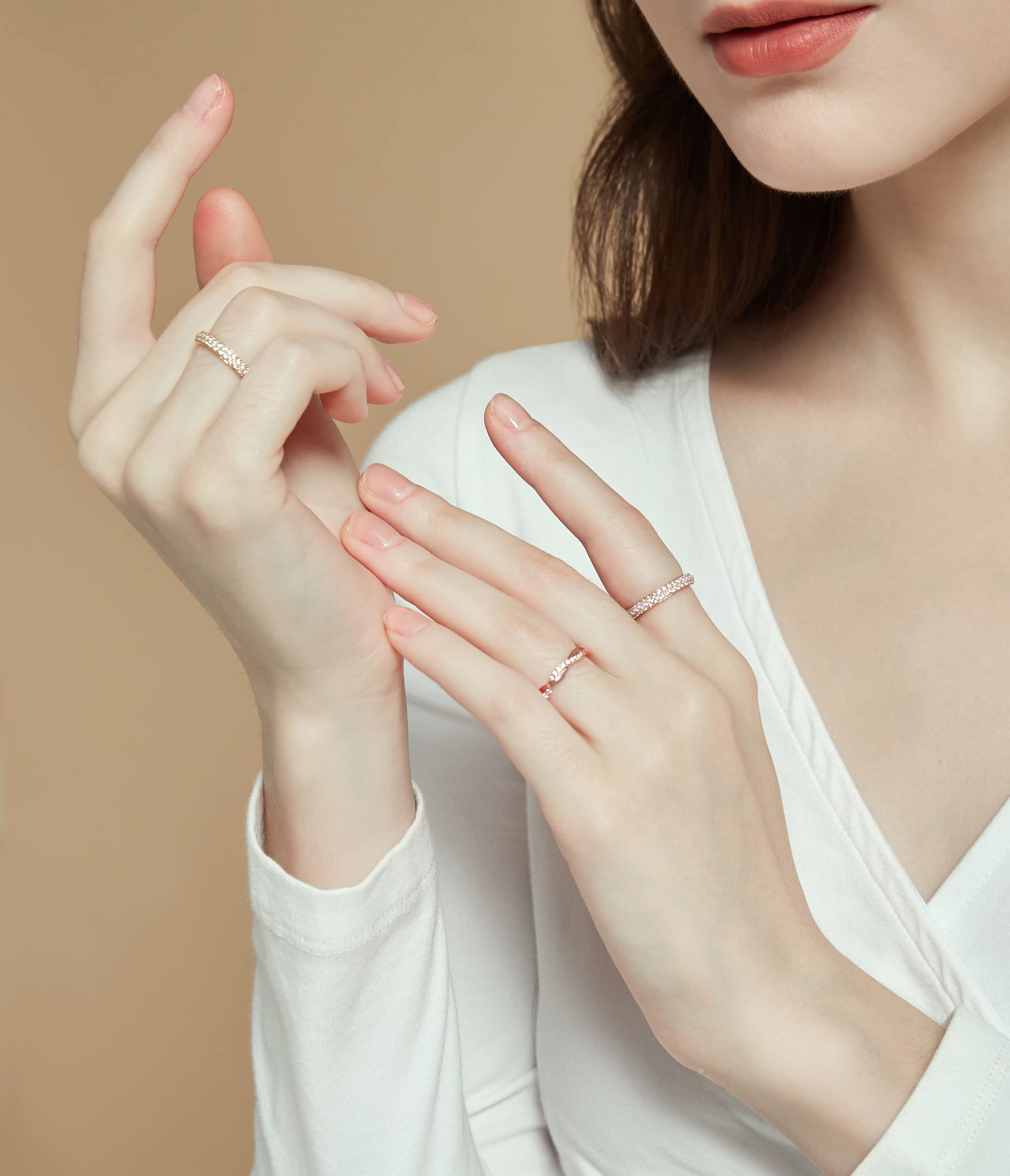 ✦ DESIGN ELEGANTE: la fascia per l'eternità a doppia fila è più accattivante di quella a fila singola. La doppia fila di piccole gemme su questo anello eternity offre moda di alta qualità ed è disponibile in oro rosa, argento e oro