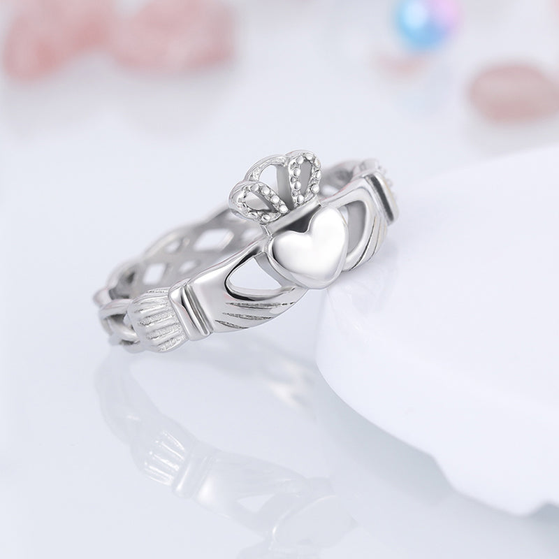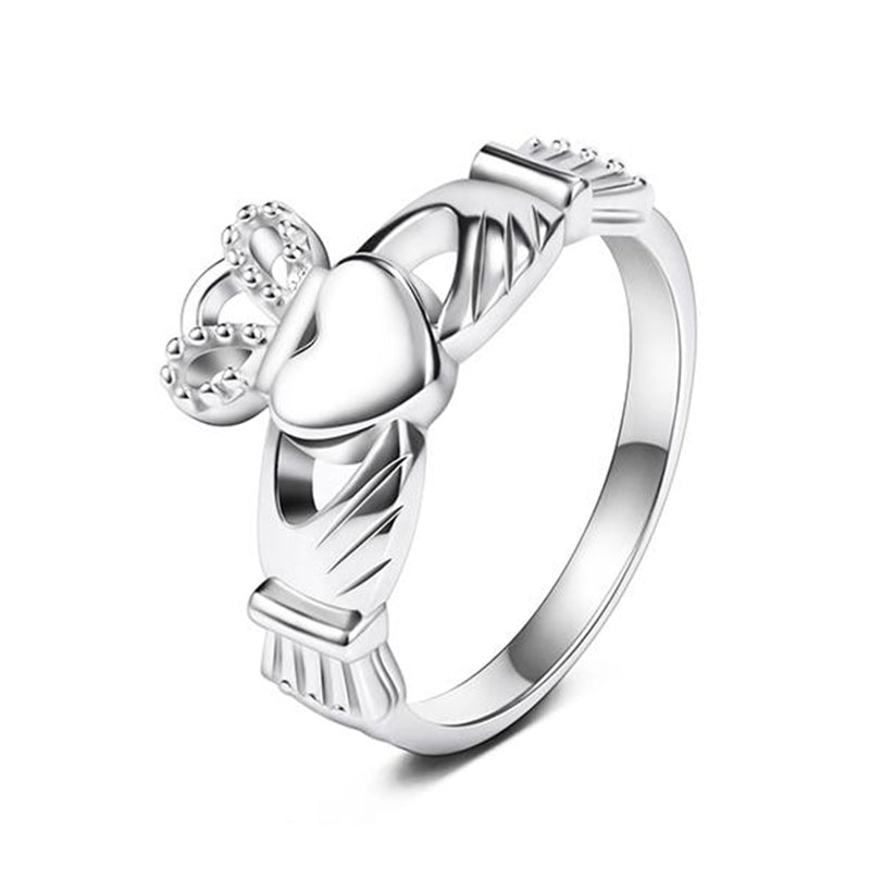 L'anello in argento sterling presenta un design irlandese Claddagh che simboleggia tre valori tradizionali. Promessa di amore, fedeltà e amicizia. Indossalo da solo o abbinalo a molti tipi di gioielli, sarà un capo assolutamente quotidiano del tuo guardaroba e aggiungerà sicuramente ulteriore brillantezza a qualsiasi completo.
