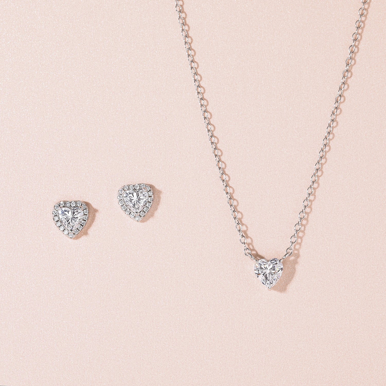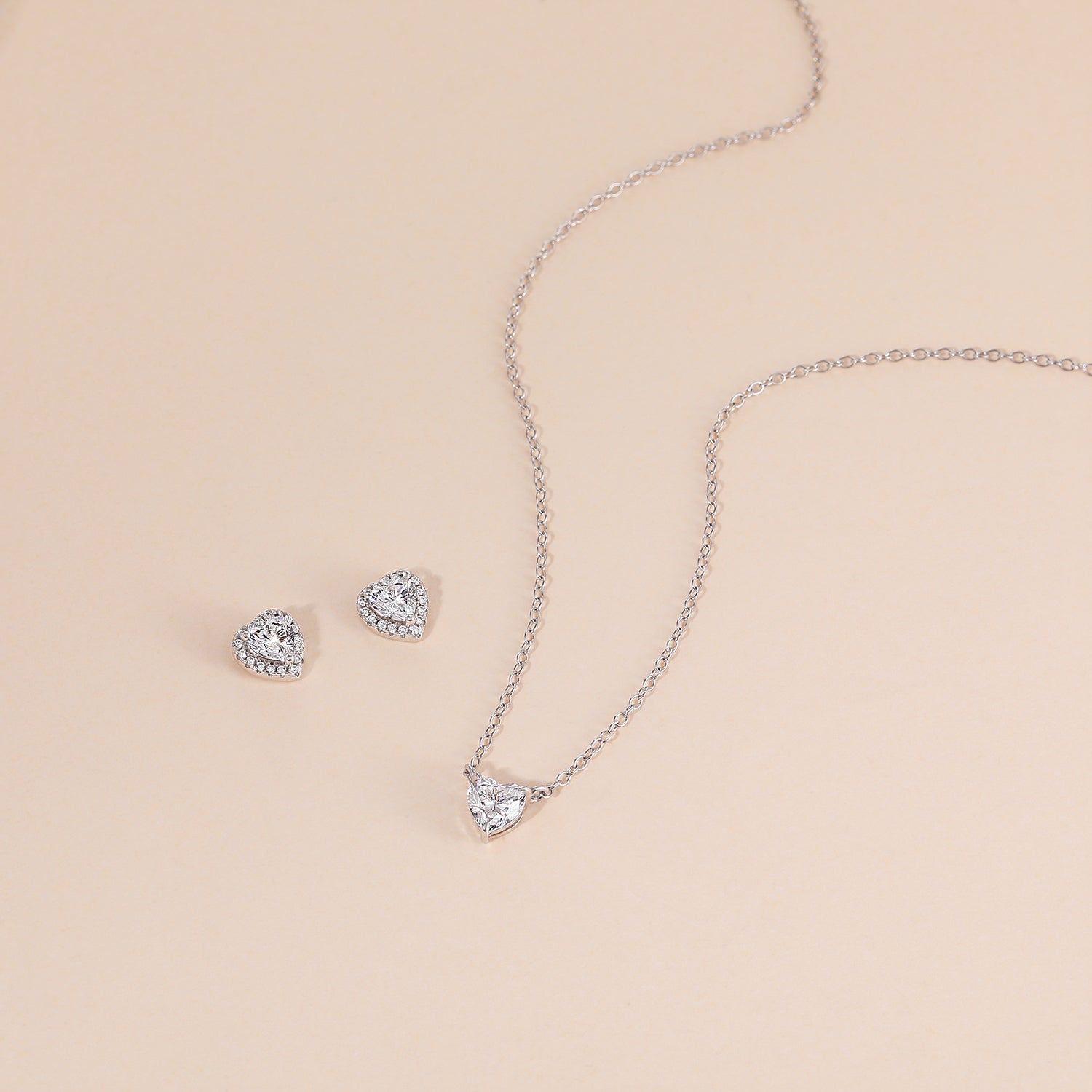 Our Heart CZ Necklace and Earrings Set is a stunning 925 Sterling Silver bridal jewelry set, featuring a contemporary heart design adorned with sparkling cubic zirconia. Perfect as wedding jewelry sets for bride, this elegant duo combines timeless beauty with lasting quality—ideal for your special day or as a heartfelt gift.