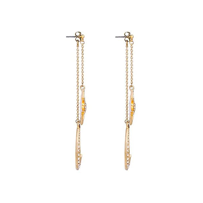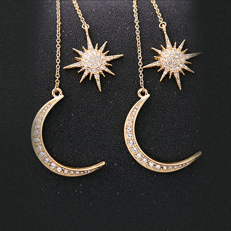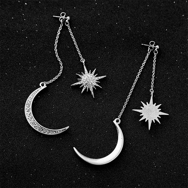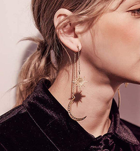 Adornati con il fascino del cielo notturno. Questi orecchini presentano graziosi ciondoli a forma di luna e stella, che aggiungono un'eleganza celestiale al tuo stile. Lascia che l'incantevole design illumini il tuo look con un fascino celestiale.