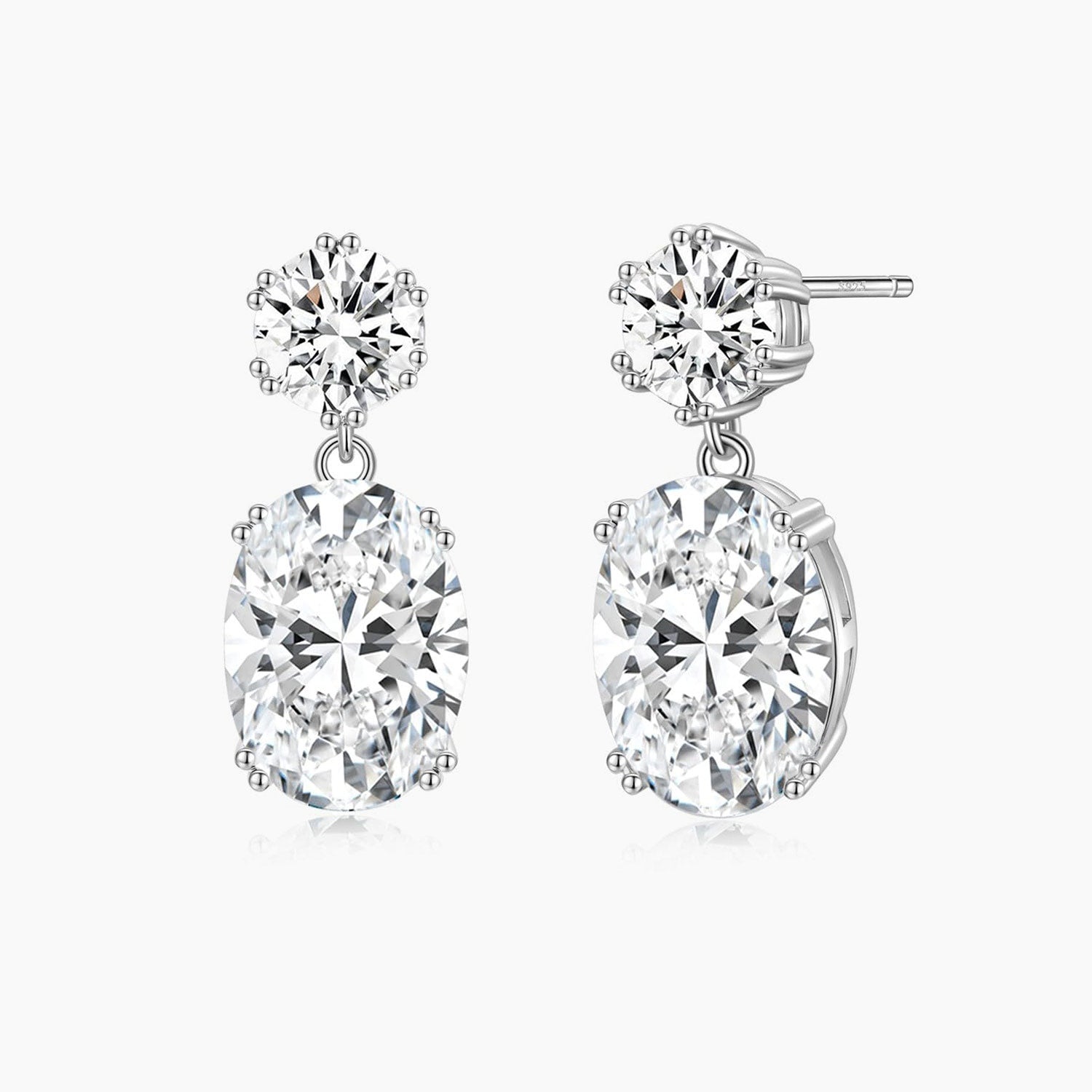 These elegant earrings are composed of round and oval cut CZ stones that shimmer and sparkle. The simulated diamonds are mounted on delicate filigree, adding a touch of sophistication and refinement. With timeless design and stunning appearance, these are a must-have addition to your jewelry collection.