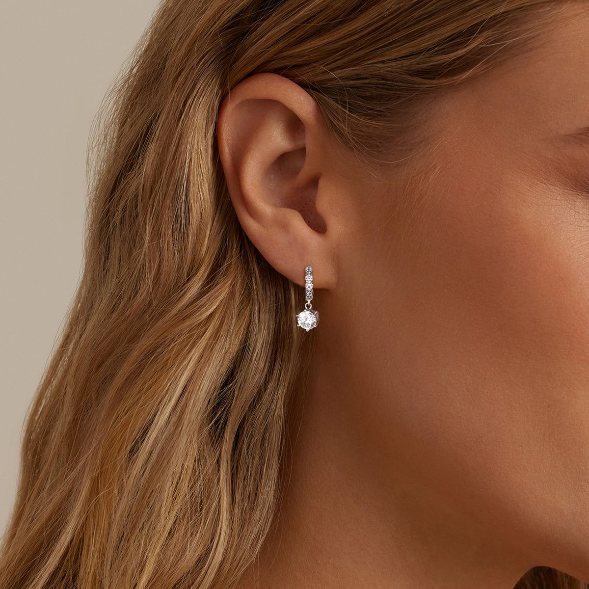 The S925 Cubic Zirconia Charm Huggies exude luxury with micro gems and round cut zirconia stones. These earrings shine like diamonds yet remain affordable.